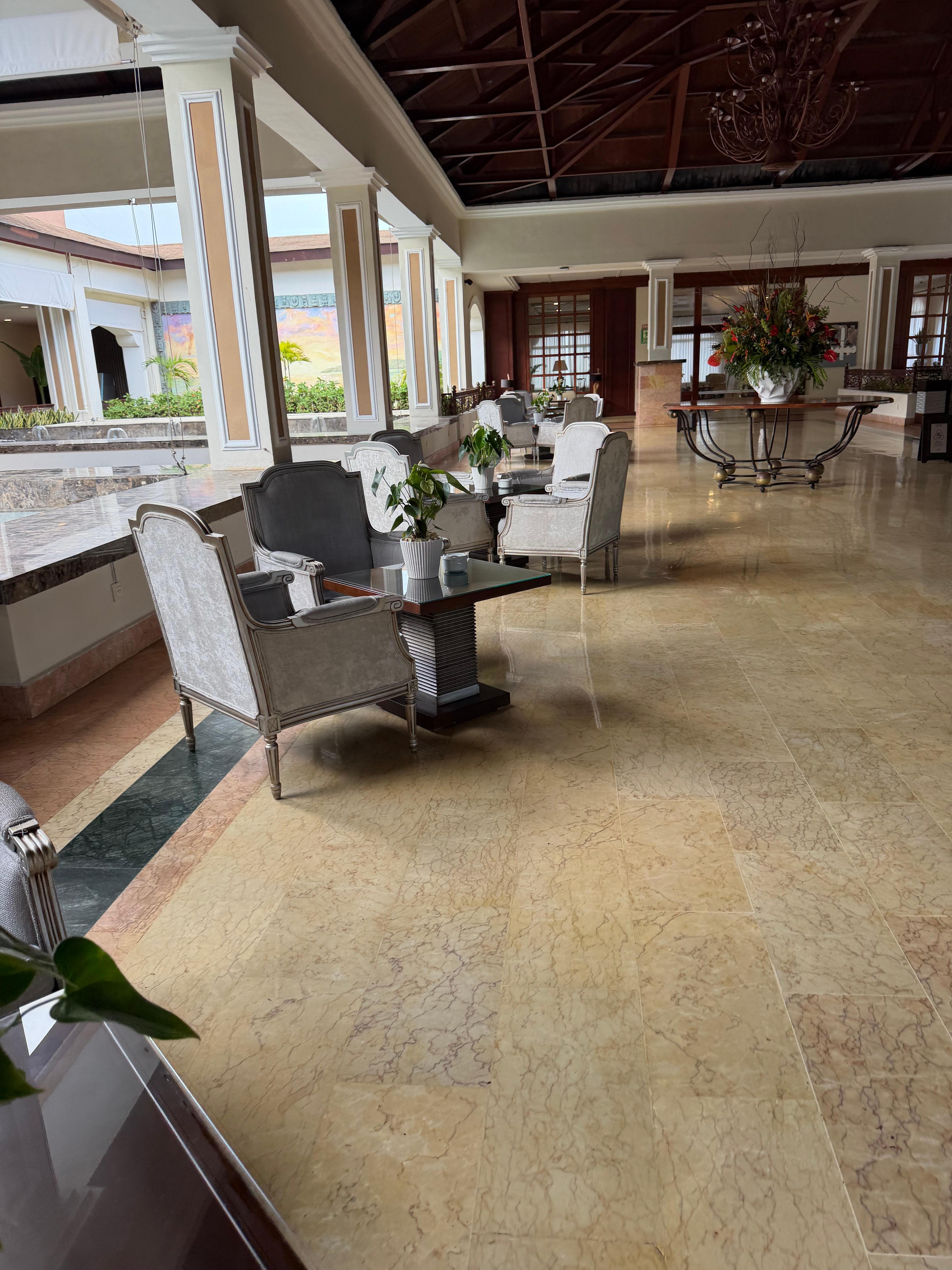 We had issues from the onset of checking in,arrived at hotel at 12:30pm we weren’t able to get into room until 5:00 pm. Typical check in is at 3:00.Room was very dated we stayed in Junior Suite with indoor/ outdoor hot tub. The room was very spacious. The refrigerator didn’t work, shower head didn’t work and no robes or slippers included. Limited towels. We were on the 4th floor, elevator did not work, the hallway to our room was littered with box springs, mattresses and dirty dishes! Which remained there throughout our stay. Food was subpar, beach was nice but over crowded. Not much space right on top of each other. Pools were nice, clean little more room to spread out than beach areas. Our so called Butler Juan was none existent pretty much throughout the stay until night before check out, I guess looking for a tip before us leaving. Definitely will look at other places to stay if we return to Punta Cana.