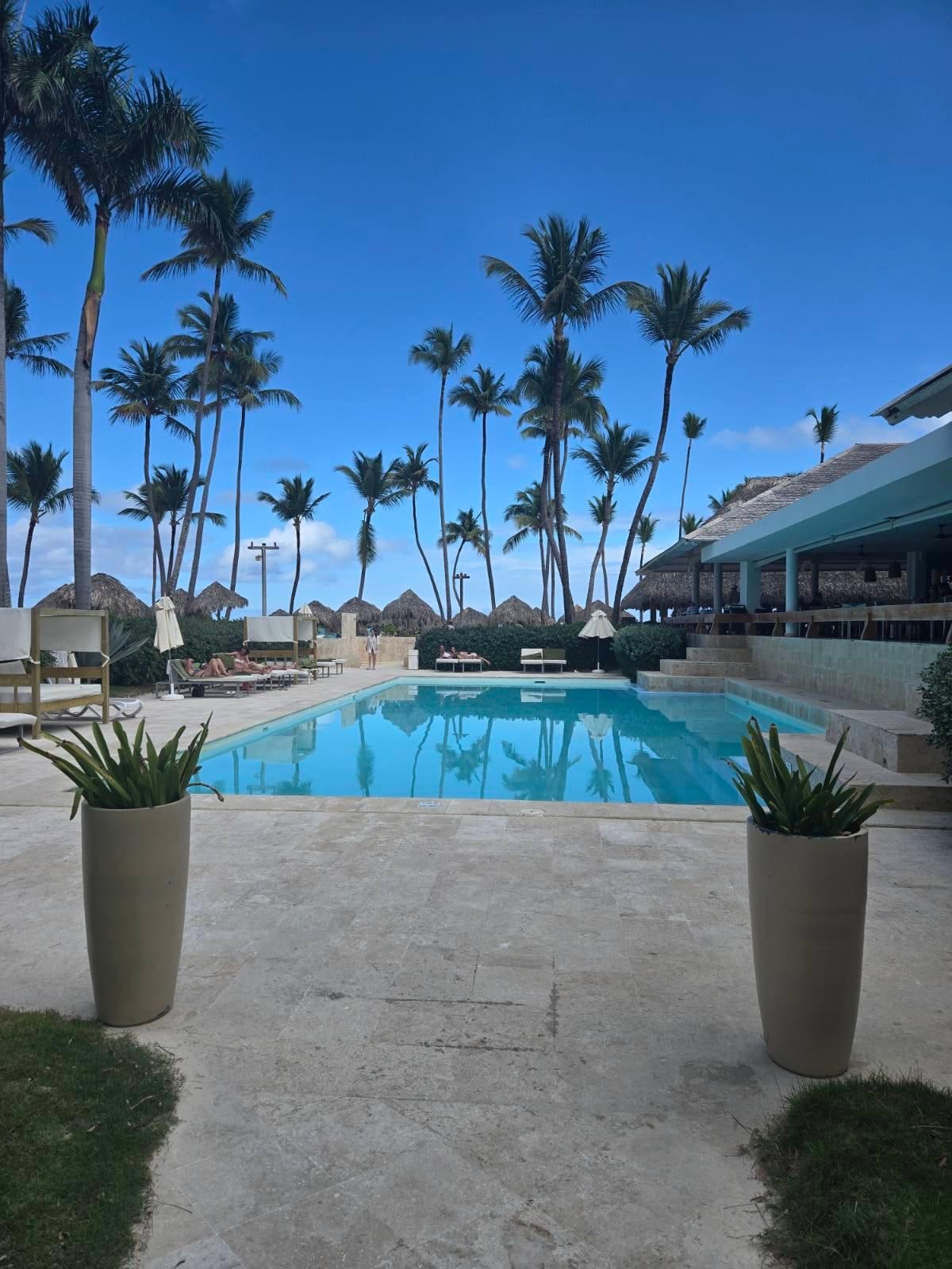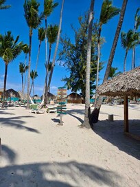 The pool was dirty and chairs were impossible to get due to early towel “reservations.” The beach was nice, and the hammocks were great.