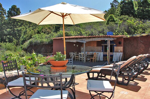 El Topo er en pen hus i en tilbaketrukket beliggenhet like ovenfor Punta Gorda, nær turstier og furuskogen rundt Fayal. Her alltid holdt i helgen et hyggelig marked sted hvor du kan kjøpe lokale produkter. Den separate egenskap er lukket med et stort jernport. Du kan parkere bilen rett på eiendommen i front av huset. Utsiden av huset er uendelige. Det er en liten hage og området foran huset ble bygget med småstein. En terrasse løper rundt i huset. På grunn av den åsside gir en unik utsikt over Punta Gorda og havet, i ryggen, den vakre fjellkjeden strekker seg. Den dekket grillplass tilbyr et stort bord med stoler for sosialt samvær. Det er her vaskemaskinen er plassert. Utearealet er gjennomført av en mobil utendørs dusj, 4 solsenger, og en annen tabell med 4 stoler. En stor paraply gir skygge når det trengs. Stor stue / spisestue var nydelig og moderne. Hvert rom har fått en annen farge og koordinert dekorere den. tilgjengelig direkte på peisen en liten sofa, et bord og bestille en stol. Den store spisebord med 6 stoler fullfører koselige kjøkkenet, hvor de ville elske også tilbringer tid hvis det er utenfor ganger friskere. En stor skjerm tilfelle gir ekstra lagringsplass for tallerkener og glass. Kjøkkenkroken ble holdt i ren hvit og er godt utstyrt. de andre rommene åpner ut mot en spisestue. En annen liten stue kan brukes som et ekstra soverom for medfølgende barn. Chaiselonguen kan omdannes til en sovesofa (1,40 x 2,00 m). Her er også en stor garderobe. Den skrånende tak skaper en koselig atmosfære. Hovedsoverommet med king-size-seng er den eneste TV-huset (satellitt-TV, flatskjerm-TV). Den lille badet har dusj / WC.