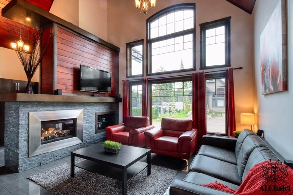Nos hôtes ont accès à l'ensemble du chalet et à toutes ses installations. En plus des espaces de vie, de la cuisine et des chambres, vous pourrez profiter pleinement de la terrasse extérieure et du spa.