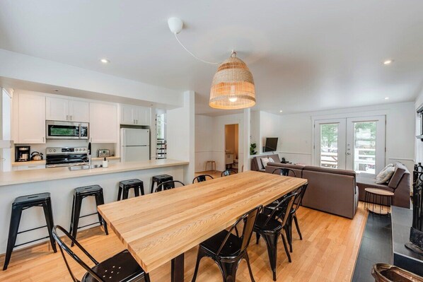 The Pioneer House can accommodate up to 12 people. The total surface is 2,200 ft2 (205 m2) over three floors. You will find yourself within minutes of Mont-Sainte-Anne’s ski slopes and bike paths.