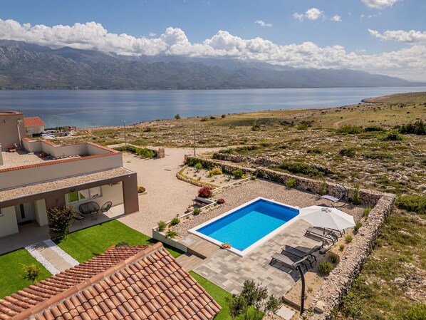 This newly built villa will enchant you with its ambiance and superb location with a unique view of the magnificent Velebit and the sea that merges with it. Located on karst soil, with its modern appearance it is completely assimilated into the surrounding area.