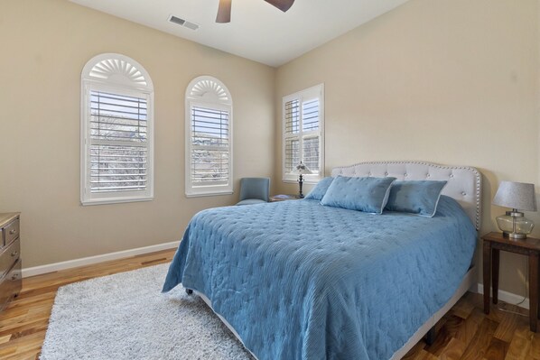 Relax here due to the safety of this Chateau that is high on a hill with an amazing view. The Chateau is well stocked with amenities such as Select Comfort King Beds and Fast WIFI.