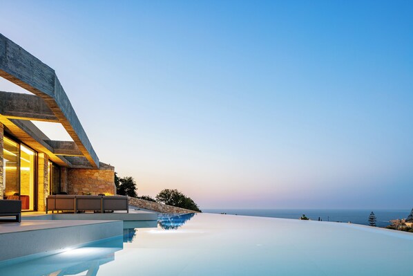 - A private, 120 sqm infinity swimming pool, with a 33m overflow. Maximum 1.5 m deep with step access.