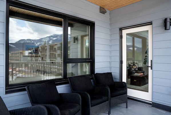 The true highlight of this condo is the cozy outdoor patio. Step outside and soak in the breathtaking mountain scenery that surrounds you. It’s the perfect spot to enjoy your morning coffee, a quiet meal, or an evening drink. With a BBQ grill and comfortable seating, you can make the most of the fresh mountain air while taking in Revelstoke’s stunning natural beauty.