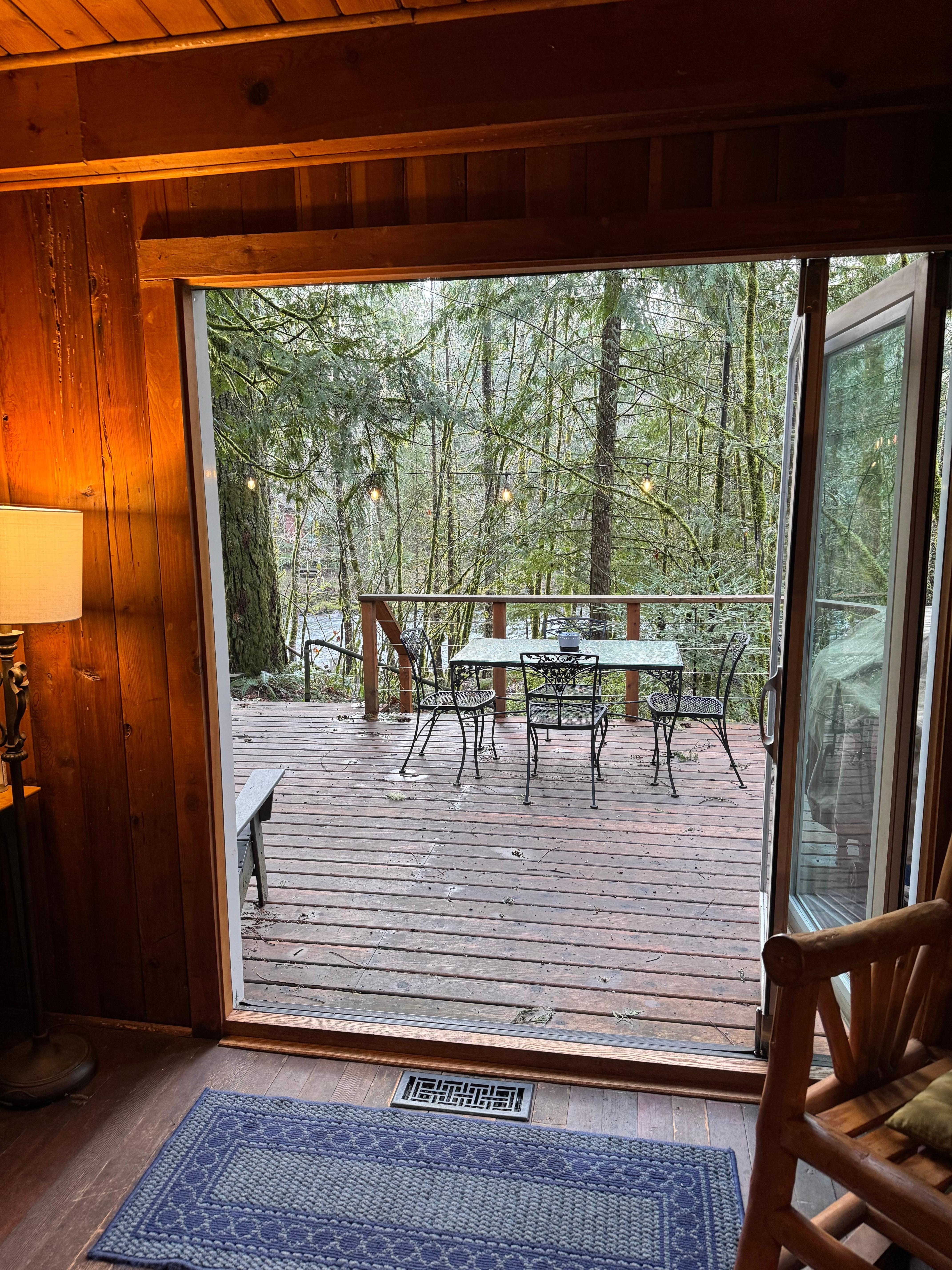 På baksiden dekk finner du en gassgrill for grilling, hagemøbler, og en privat badestamp rett rundt hjørnet. Med vakker utsikt over skogen, elva, og selv et ildsted ned i nærheten av vann, er dette fristedet ideell for medlemmer i alle aldre gruppe! Plus, for $ 10 per dyr / per dag (og en $ 40 minimum), du kan ta med hundene å løpe rundt i bakgården.