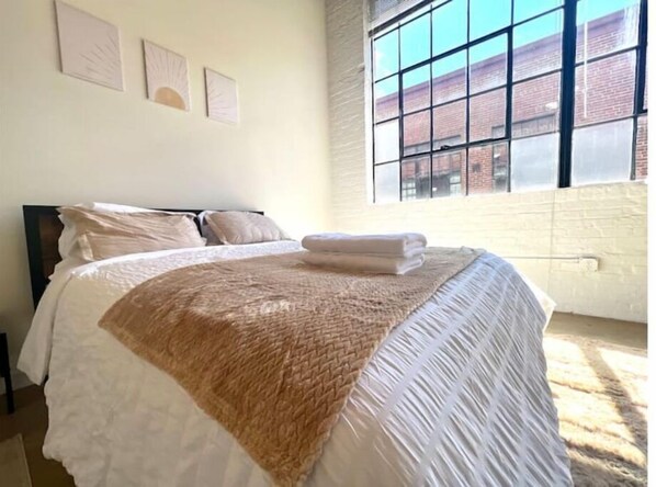 Our cozy living space includes a premium queen & full-sized bed + 3 extra Futons for you and your friends/family, high-speed internet, & 3 Smart TVs conveniently located in every room