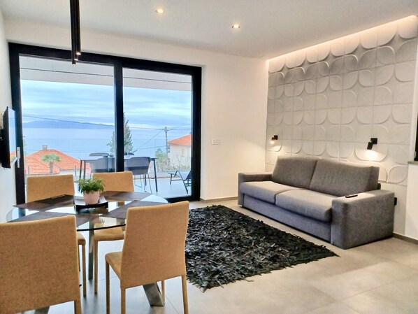 Deluxe sea view apartment with pool close to beach in beautiful Rijeka