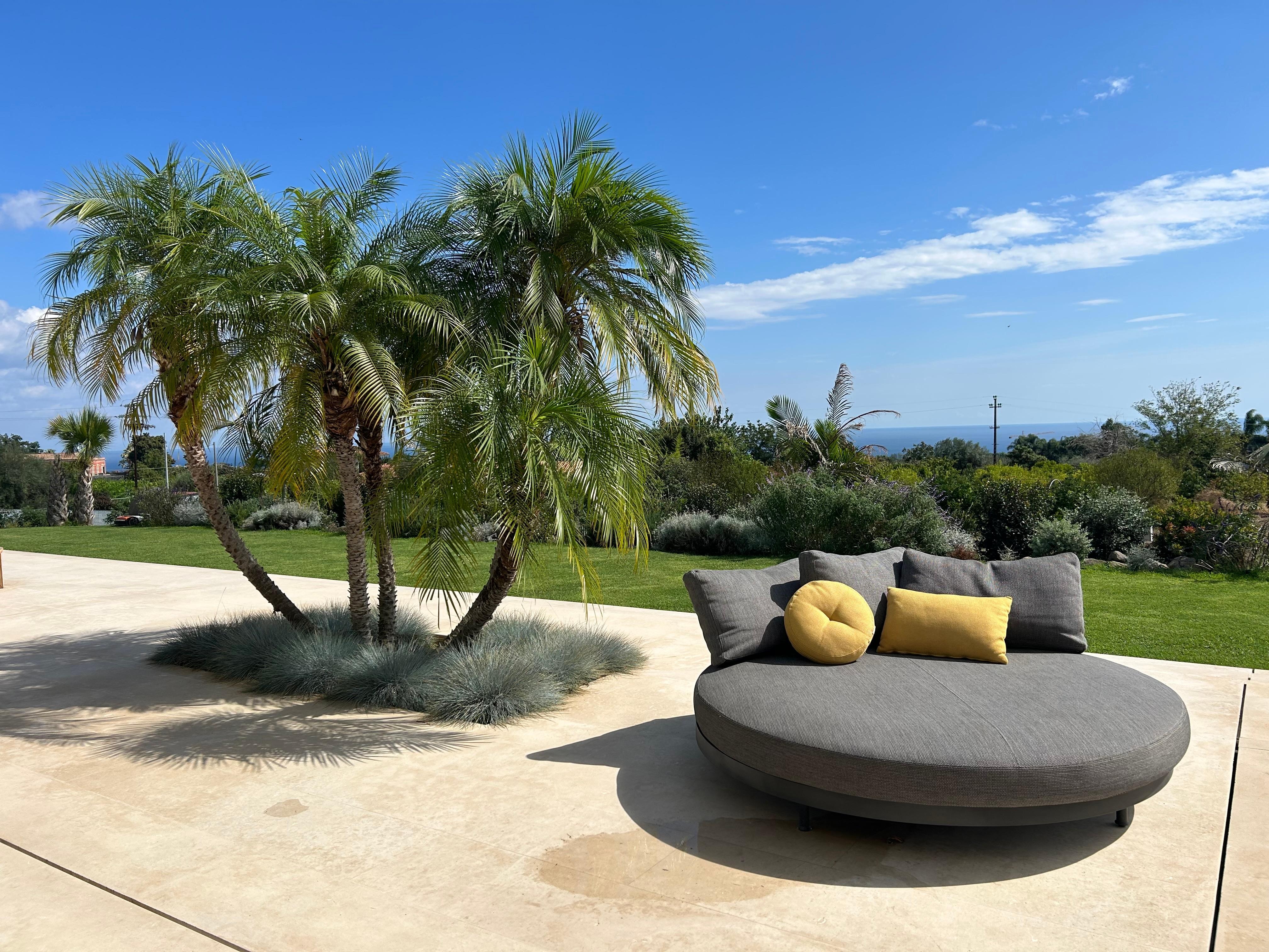 Surrounded by an enchanting Mediterranean garden, this exclusive residence boasts a splendid infinity pool plus spacious and well-equipped terraces overlooking the countryside and the sea, where views extend all the way to Taormina and Mount Etna. Hermosa is a modern villa designed and built in full respect of the environment, availing of eco-friendly technological and building solutions, including solar-thermal and photovoltaic systems, a heating-cooling system and thermal-break aluminium windows. Perfect for relaxing holidays in spaciousness, luxury and comfort, Villa Hermosa stands out for its refined contemporary design. The interiors are split across three levels interconnected by an easy internal staircase. On the ground floor is a super-equipped kitchen and extensive living area with large full-height windows, opening out onto the terraces, garden and swimming pool. On the first floor is the sleeping area with each of the three bedrooms having a patio and private bathroom with shower. On the lower floor, rather, there is a fourth bedroom, again with en-suite with shower, along with an exclusive wellness area with a roomy hot tub, sauna, Turkish bath, emotional shower and fitness area. The fully air-conditioned residence is equipped with only the best comforts: Wi-Fi, Smart TV, washing machine, dryer, dishwasher, electric oven and microwave, espresso machine and American coffee maker, wine cellar, ice machine, barbecue area and private parking. Yet, Hermosa is also an ideal starting point for setting out on a short drive to the beautiful beach of Fondachello, Taormina, Etna and Catania. Further south are Syracuse, Vendicari and the evocative baroque towns of the Val di Noto.