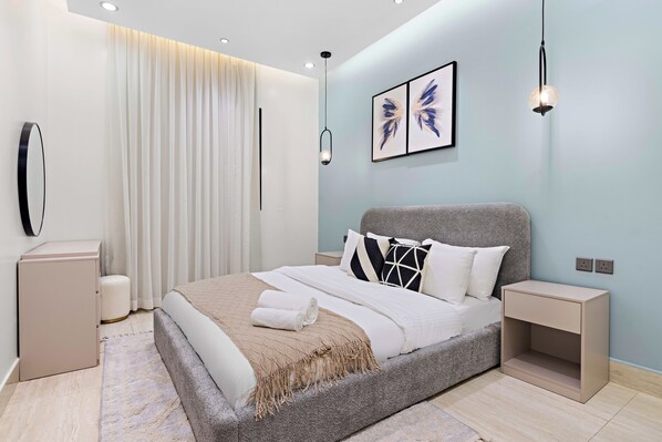 Leilighet med kjøkken og seng med memory foam-madrass i Riyadh
