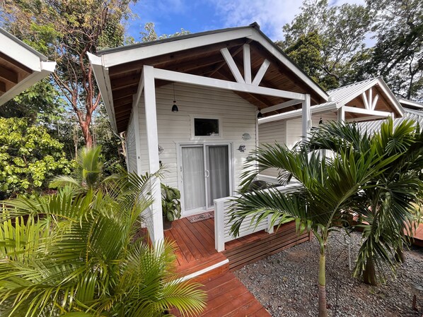 This cozy casita (studio) has a warm tropical feel. It's near the pool but not too close. It has a fully equipped kitchenette with everything you need to prepare meals and keep you're drinks cold. The bathroom has a large shower and plenty for room you to get ready for your night in West End. Sip on your morning coffee on your private deck and watch the wild macaws fly in for their morning visit. The lush jungle is all around you with the breezes to keep you cool while you relax in the hammock.