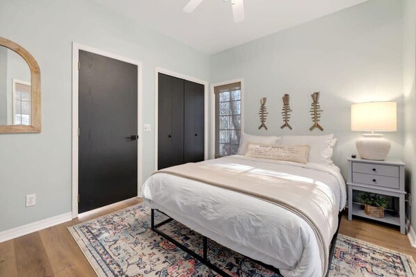 A code will be provided to access the home. Parking is available in the garage and driveway of the property. Guests will have access to the entire home, appliances, and amenities mentioned above.