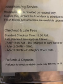 Innsjekking: fra kl. 15.00 til midnatt og fra kl. 11.00 til kl. 15.00. Tidlig innsjekking er mulig mot et gebyr på USD 60 (avhengig av tilgjengelighet). Det er ikke mulig å sjekke inn etter stengetid.