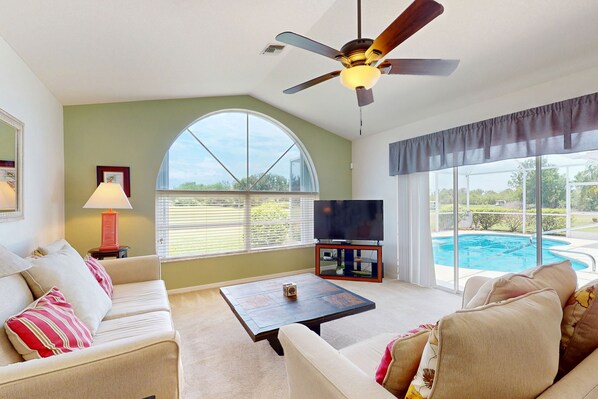 Golf course front home with private pool, lanai, & internet