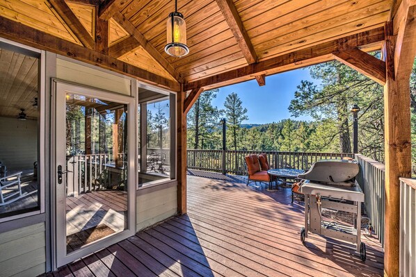 Denne eksepsjonelle hytta med 3 soverom og 3 bad Bad Ruidoso ligger et skritt over resten. Med fantastisk utsikt over fjellene og elvene, et privat badestamp og overnattingssteder for opptil 9 gjester, er 'Cabin in the Sky' perfekt for de som søker en avslappende fjelltur med en førsteklasses beliggenhet. Du finner turstier og skiløyper bare en kort kjøretur unna, mens du befinner deg i gangavstand fra de livlige butikkene, restaurantene og galleriene i Midtown!