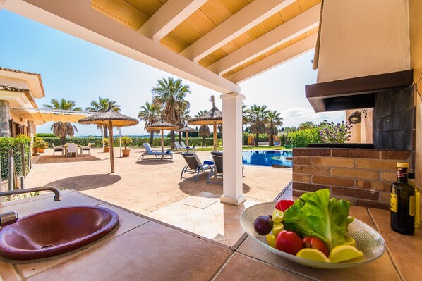De nærmeste butikkene og restaurantene ligger omtrent 1,5 km unna, i den mallorquinske landsbyen: Sa Pobla. Stranden i Alcudia, Playa de Muro og Can Picafort ligger 15 minutter unna med bil.