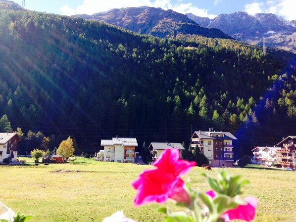 43 m2. More information by the provider: Top apartments & location - 140 m to cableways! Summerhit cableways & postbus INCLUDED. Nice terrace with garden furniture. Wi-Fi and own parking space for free. Within 20-200 meters: Cableway Hohsaas, ice rink, cross country slopes (20m), bus stop towards Saas-Fee (50m), shopping and entertainment such as restaurants, hiking and mountainbike trails. BBQ space and playground in summer season.