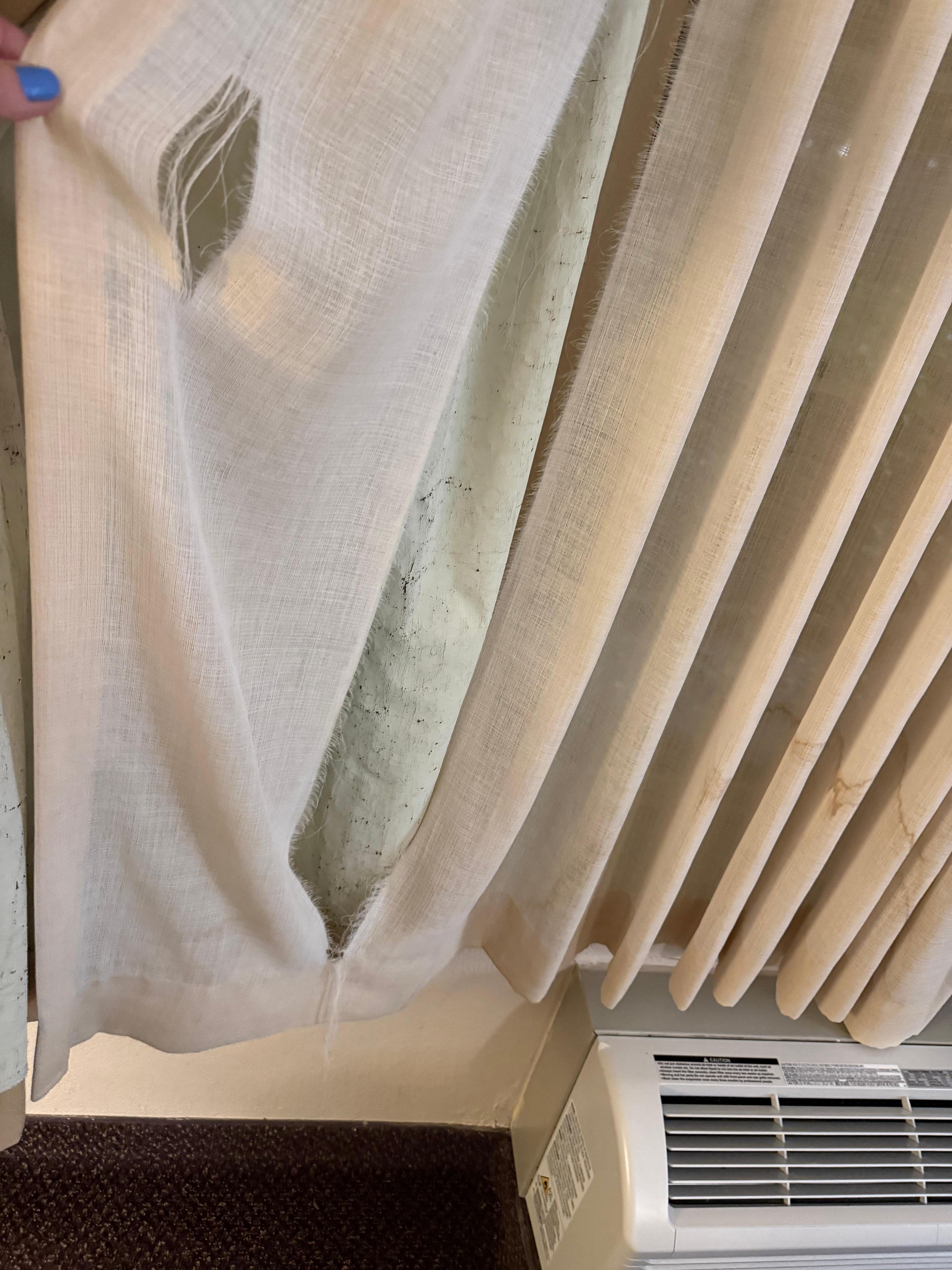 I was very disappointed in the condition of my room. The bed and bathroom were clean enough for me to not leave, but the room was dark, dingy and dirty. It smelled like mold and I got some kind of sinus infection from breathing the stale air coming out of the air conditioner. I took pictures of the stained, shredded drapes and the black dirt in the window sill. There was one greasy egg pan and a couple dishes in the kitchen. The continental bkfst consisted of a bowl or bananas, a bowl of oranges, prepackaged waffles and bagels in a frig, and watered down coffee. I will NEVER stay at this hotel again. I travel to Sacramento often to visit my children, this was the worst experience Ive ever had.