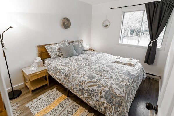 Petit chalet simple avec tout ce qu'on a besoin pour relaxer. J'aurais apprécié un peu plus de terrain pour les.enfants (couper l'herber autour du feu).