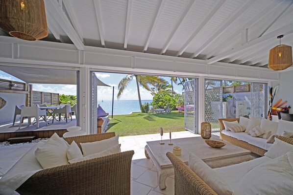 Villa ved vannkanten med kjøkken og terrasse