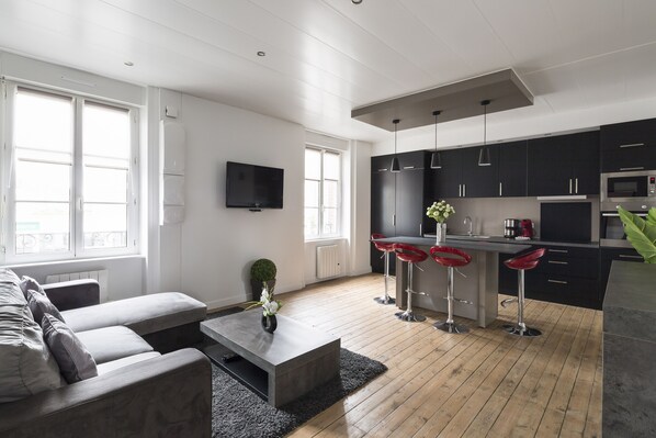 Perfekt utstyrt (oppvaskmaskin, stekeovn, mikrobølgeovn, induksjonstopp, kjøleskap, fryser, TV og vaskemaskin) og smakfullt innredet, vil du sette pris på sin store stue vennlig og ideell for å slappe av.
