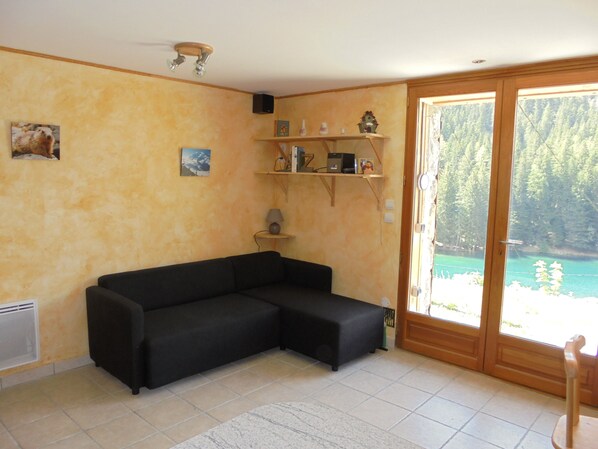 Interiøret har alle bekvemmeligheter med kjøkken utstyrt med keramisk platetopp, multifunksjonell stekeovn, mikrobølgeovn, oppvaskmaskin, raclette, fondue sett. Stuen med stue og spisestue har en vedovn, satellitt-TV-mottak, hifi. en kjeller som kan lagre gruveutstyr (sko, ryggsekker).