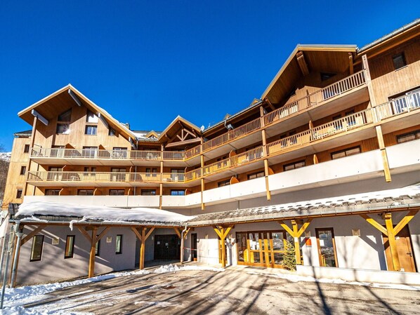 Les Bottieres is a beautiful four-story residence situated in a central location, directly adjacent to the skiing area with a south-facing position. This holiday rental offers shared amenities including a heated indoor swimming pool (5 x 7 m, depth 110 - 130 cm), internet access, sauna (extra charge), and a storage room for skis. There is limited parking available on-site. It is conveniently located near a restaurant (50 m), bar (40 m), ski lift (50 m), ski rental (10 m), and ski school (70 m).