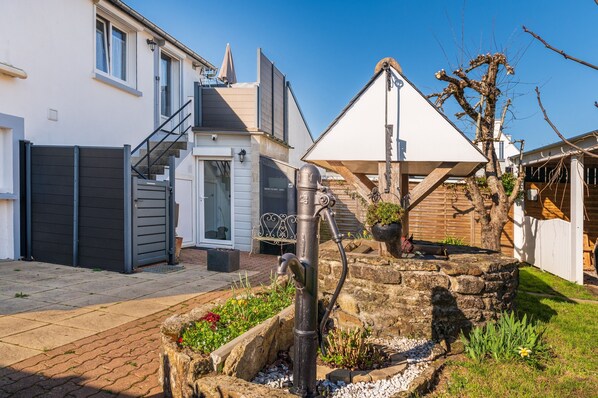 This vacation rental features a shared garden for a peaceful and rejuvenating experience.