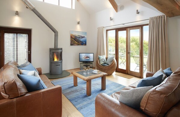 En høy kvalitet moderne låvekonvertering i en utmerket uberørt kystposisjon i Sør Devon-området med enestående naturlig skjønnhet. Apple Barn ligger ved hodet av en dal som fører ned til elvemunningen, med vakker utsikt til Salcombe og solnedganger.