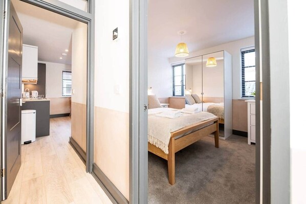 A newly refurbished modern one bedroom apartment, located on the second floor. The property boasts a brand new kitchen, with built in appliances. There is an open plan kitchen/living/dining space that has a stylish Double Sofa Bed that can be used to accommodate an additional adult or child. The living space has a 32'' smart TV that can be watched from the table, sofa or both.