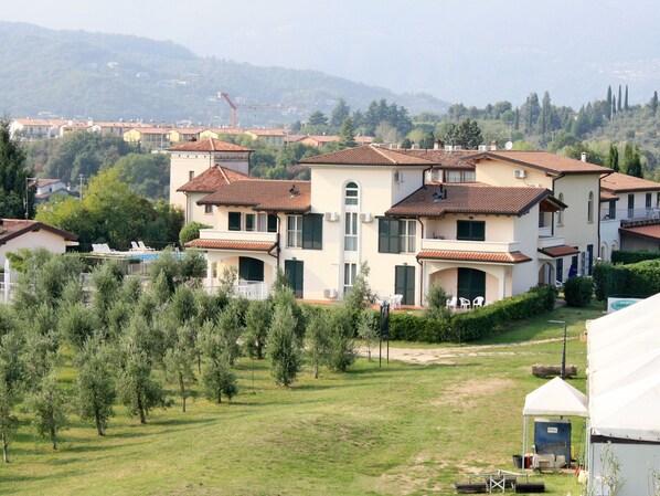 Residens "Il Colombaro", fra det 14th århundre, renovert. 21 leiligheter i residensen. I området Cunettone di Salò 4 km fra sentrum av Salò, i en solrikt posisjon på toppen av en høyde, 4 km fra innsjø, på golfbanen. Fellesbruk: tomt 150'000 m2, blomster og trær, eng, 1 badebasseng (14 x 7 m, Sesongåpent: 15.Mai. - 30.Sep.). Barnebasseng, utendørs dusj. I anlegget: restaurant, bar, oppvarming betales lokalt. Parkering (begrenset antall plasser) på tomten, felles garasje ved hbrukt. Supermarked 200 m, bussholdeplass 500 m, småstenstrand 4 km. Attraksjoner i nærheten: Desenzano del Garda 19 km, Brescia 39 km.