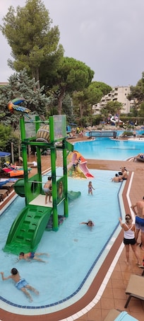 Ja, dette overnattingsstedet har et innendørsbasseng, et utendørsbasseng og et barnebasseng.