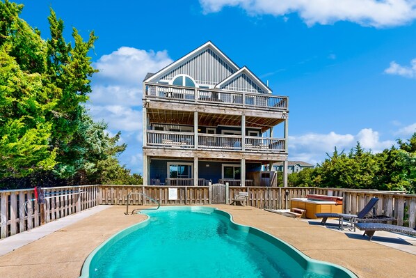 Dog-friendly home with pool, hot tub, ocean & sound views, & central AC
