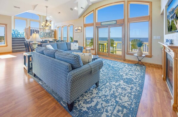 We are 2 families with younger children- 9 people total. We had a wonderful vacation in this home. It was clean and very cool from the very hot summer days. The VIEWS are panoramic from the main floor. We enjoyed morning coffee in the crows nest sitting room- the kitchen is well stocked. The 2 dishwashers made clean up a snap. The rooms were spacious with sliding doors to balconies. The only thing that we thought would have made our stay better was a gas grill. It says that there is a grill but they are 2 small charcoal grills which made cooking for a large group difficult. Also, being on the sound kayaking and stand up paddle boarding is a must- but we had to rent them- having one would have been nice. We also rented golf carts to get around- we were able to use them to get back and forth to the beach. The town is definitely not golf cart friendly, but made getting to and from beach easy. The private dock was great for the kids. They enjoyed fishing and crabbing off of it. The Sound is very shallow and kids had a blast playing in the water. It looks like they once had a small beach but it is all over grown now. Two restaurants that we enjoyed where PO House and Pangea. They are in Avon which is a 20min drive South. That is also where a Food Lion grocery store is located. Over all- this house was wonderful and we enjoyed our time in OBX.