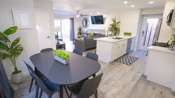This beach getaway sleeps 10, and has all the amenities to make you feel right at home. Enjoy the private outdoor patio where you can relax in the sun and enjoy the ocean air with a good book. Or spend quality time with loved ones while grilling on the BBQ. There are boogie boards, beach chairs, sand toys and a cooler for your use, all of which come in handy when everyone is ready to head to the beach... a mere 100 feet and your toes hit the sand! But your adventures and entertainment aren’t limited to the beach. Take in local attractions like Belmont Park, Sea World, or the La Jolla Tide Pools. And when it comes to dining and shopping, the options are endless!