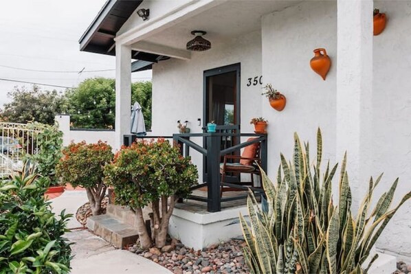 While the house is small, it is super cute with a lovely, lush, wraparound patio and yard that invites you to enjoy the cool San Diego air.Well-appointed kitchen and bathroom with comfortable beds.The neighborhood is quiet but very convenient to the freeways. It was the perfect location for hitting the Zoo, Balboa Park, the Midway, and Old Town.Felt very secure with the gated parking for our car. The only negative experience was the colored drink coasters provided, which were artistic and colorful, but when they got wet, they stained the surface they were sitting on. Overall, this vacation rental wasn't just a place to crash, it added to the enjoyment of our trip.