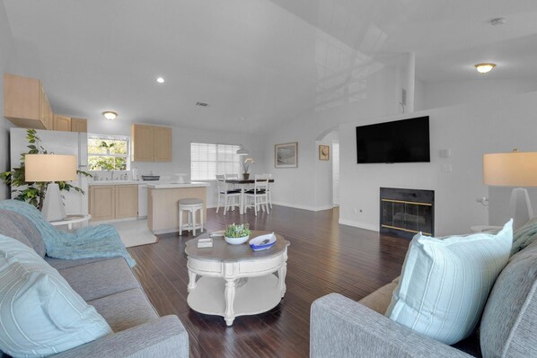 This home is nestled in the heart of the neighborhood, offering convenience and comfort at every turn. Inside, you'll find a bright and open floor plan, with a cozy living room. Both primary bedrooms boast king beds, with one room offering an ensuite bathroom.