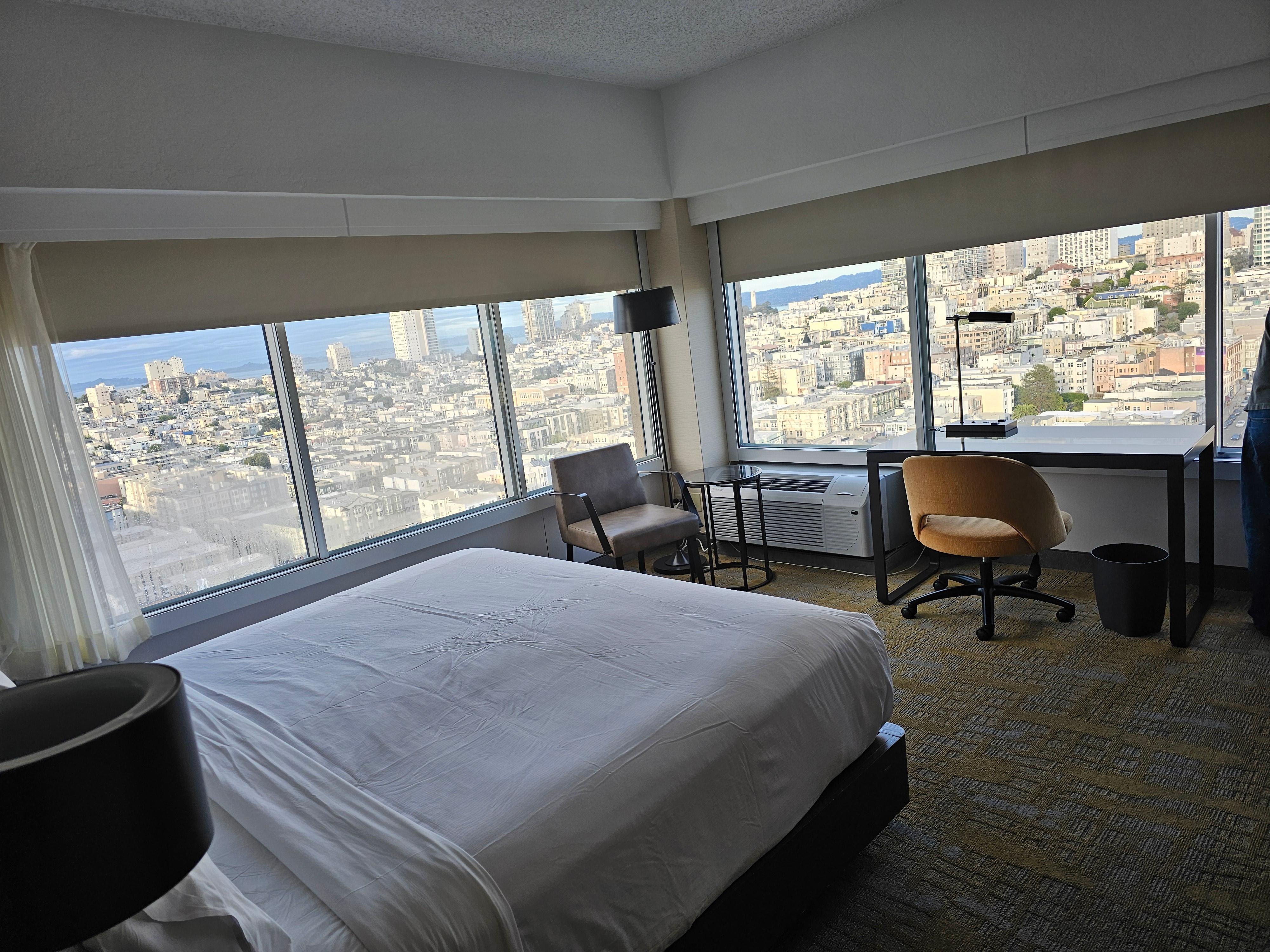 Very clean, quiet, updated room. Comfortable bed and shower, too. Had a corner room with an amazing view of the city and Bay!