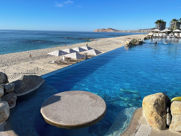 The beach directly in front of the resort is not swimmable due to the heavy surf but you can walk about 50 yards down the beach and swim in front of the Solaz resort.