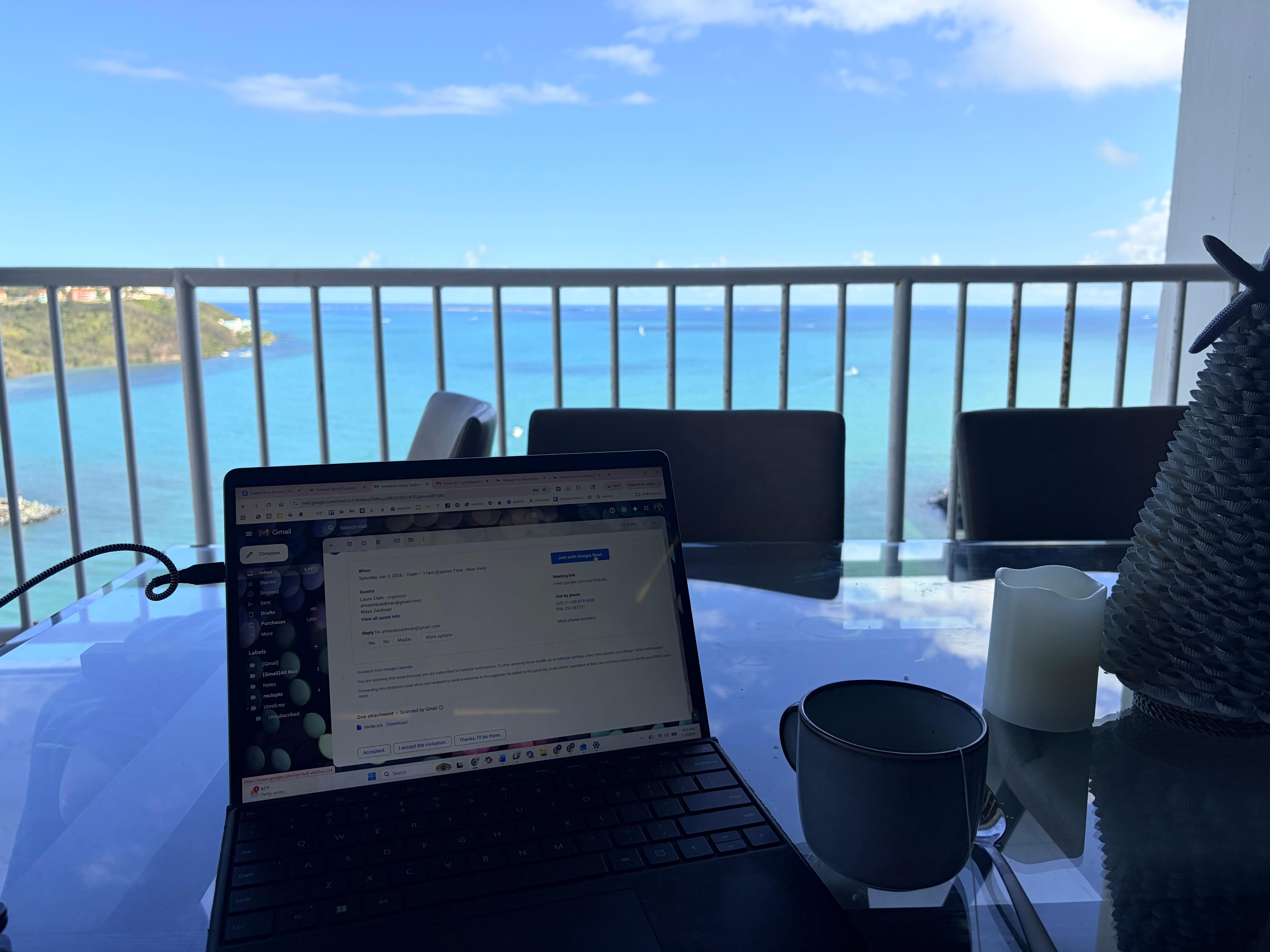 We encourage you to stop- no, really, STOP!- every day and take in the view from our balcony looking out at the ocean and notice how the water changes colors throughout the day. Open the sliders, take it all in and just relax like we do.