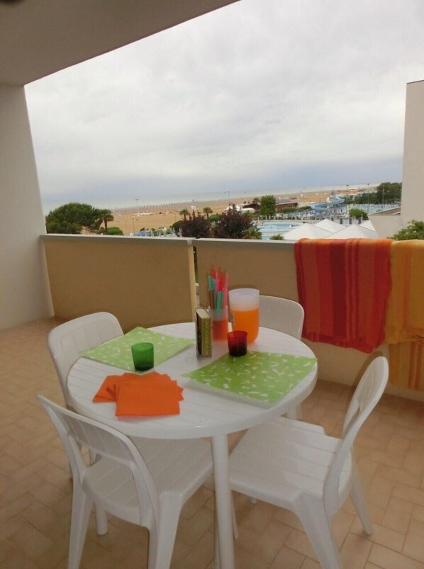 Sea view flat with balcony and pool