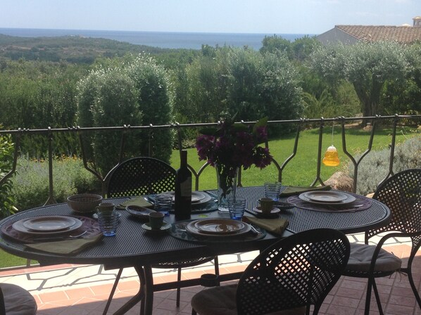 Den nybygde Villaen, med en fantastisk havutsikt på øyene Tavolara og Molara, ligger i en fantastisk hage på 1500 kvadratmeter laget i Sgaravatti og har romslige og velutstyrte verandaer.