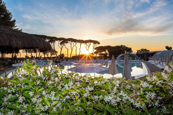 Vi leide en hytte i Park Albatros i 12 dager. Vi var totalt 6 stykker i hytta, fire voksne og to barn. Vi kom med leiebil fra Pisa og med GPS var det veldig enkelt å finne fram. Det tok ca 1 time. Vi kom sent på kvelden (ca kl 23), men det var en vakt som ga oss nøkkel og sjekket oss inn.