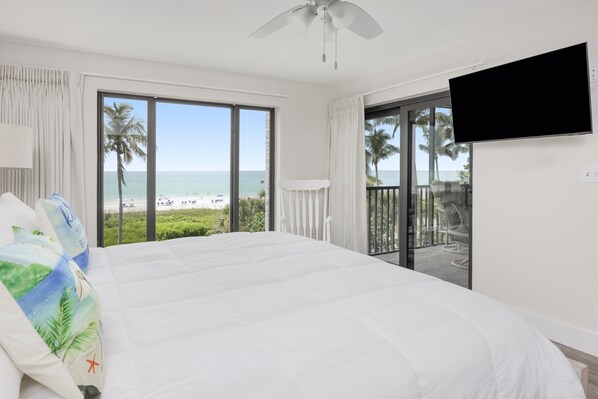 Fall asleep in the primary bedroom with the comfortable king bed while enjoying the sounds and views of the Gulf. Your guests will be very comfortable in the guest bedroom featuring two full beds and ample storage. Additional sleeping on with queen sleeper sofa.