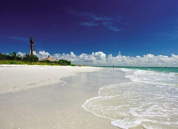 Denne pent innredede andre etasje har alle hjemmets bekvemmeligheter for å gjøre en minneverdig ferie! Den romslige 2-sengers / 2-bads røykfrie enheten ligger bare en kort spasertur fra den hvite sandstranden og rett rundt hjørnet fra vårt krystallklare oppvarmede basseng. Hovedsoverommet har en king size-seng og tilgang til en privat skjermet Lanai. Gjesterommet har to enkeltsenger som kan gjøres til en konge på forespørsel. Den komfortable stue / spisestuen fører til en romslig skjermet Lanai med utsikt over vår frodige tropiske hage, inkludert en bananlund. Det fullt utstyrte kjøkkenet har granitt tellere, glatt topp komfyr og ismaskin i fryseren. Andre fasiliteter inkluderer takvifte, sentral luft, 3 satellitt-flatskjerm-TV med DVD og stereo CD-spiller, queen size-sovesofa, sengetøy og en startpakke med såper, papirprodukter og kaffe. Strandstoler og en parasoll er tilgjengelig for din fornøyelse. Badehåndklær er tilgjengelig for kjøp eller leie i vårt kontor på stedet. Sanibel Siesta tilbyr tennisbaner, oppvarmet svømmebasseng, WiFi, sykkelutleie, shuffleboard, gassgriller, vaskerom og heiser .... alt i en fargerik tropisk setting med fantastiske solnedganger! Vi er beleilig plassert innen gangavstand fra en golfbane og restauranter og tilbyr umiddelbar tilgang til Sanibel?s berømte sykkelstier. Maks occupancy er 6 inkludert barn og spedbarn. Husdyr ikke tillatt.