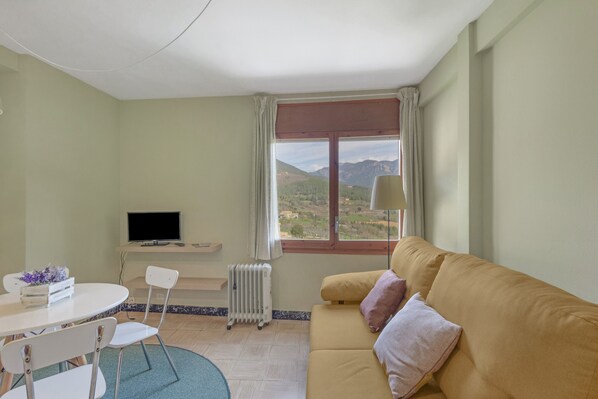 Close to the Pyrenees, the holiday apartment El Campanar in Sant Llorenç de Morunys impresses guests with its fantastic location. The 35 m² property consists of a living room, a kitchen, 2 bedrooms and 1 bathroom, accommodating up to 3 people. Additional amenities include high-speed Wi-Fi (suitable for video calls), television, fan, and washing machine. A cot and a high chair are also available. This accommodation does not have air conditioning. The holiday rental features a private balcony, ideal for relaxing in the evening.
