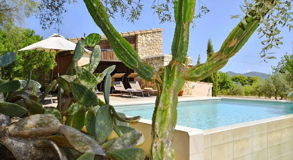 Rustikk eiendom med stort basseng