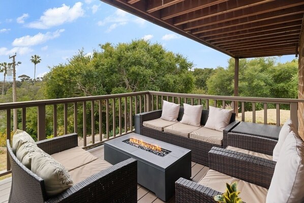 Luxury Getaway with Ocean + Island Views, Fire Pit & Big Deck