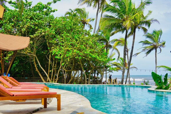 Vandrerhjem på stranden med utendørsbasseng