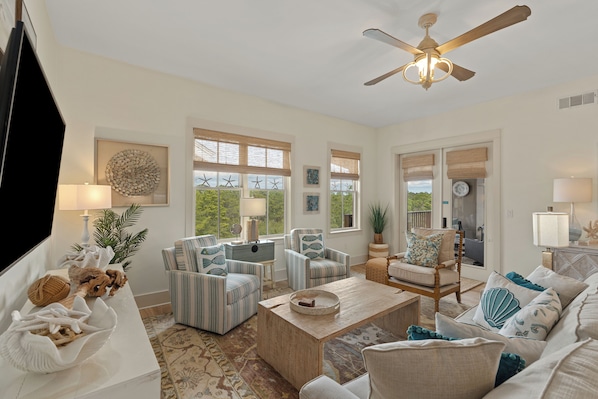 ABOUT THE HOME: Conveniently located in Blue Mountain Beach's Redfish Village, this condominium is bright airy and the perfect spot for your family or friends to enjoy the beaches of the Emerald Coast! With quaint neighboring beach communities galore and miles of white sand beaches to explore, you'll never run out of exciting ways to fill your days. Enjoy the sunsets, that overlook the pool! Come experience the magic of a 30A Kinda Day.